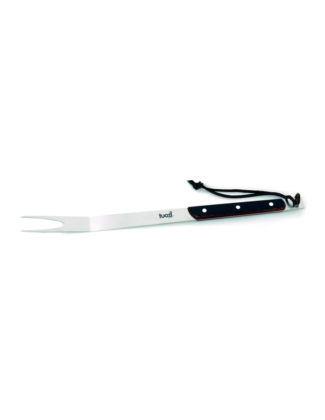 Tenedor para barbacoa. Acero inoxidable duro 304 1 ½ (esmaltado) y mango de contrachapado rojo y negro.